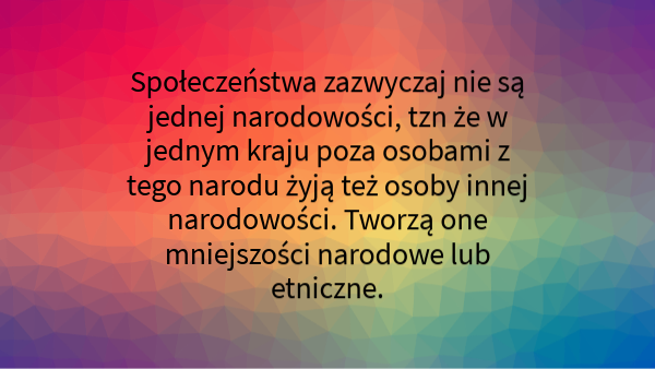 Mniejszość etniczna to odrębna pod względem kulturowym grupy. Nie utożsamiają się z konkretnym narodem.