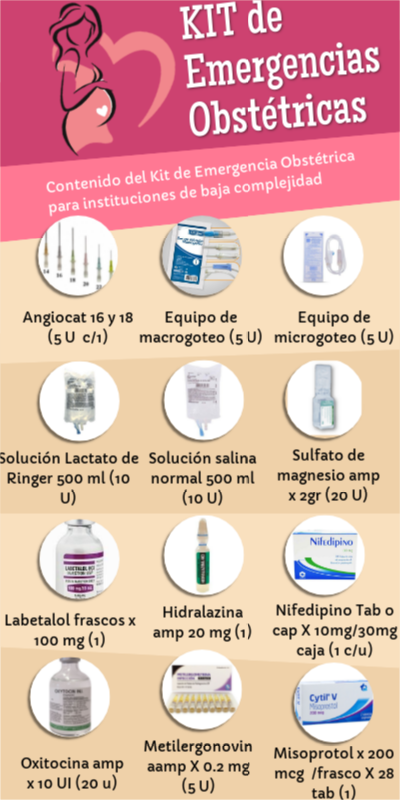 Contenido del Kit de Emergencia Obstétrica para instituciones de baja complejidad