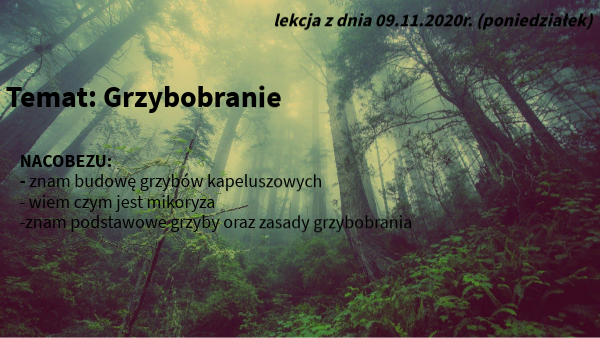 NACOBEZU: - znam budowę grzybów kapeluszowych - wiem czym jest mikoryza -znam podstawowe grzyby oraz zasady grzybobrania