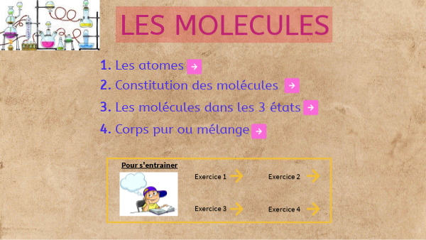 Passez la souris sur le nom de la molécule pour voir sa formule et sa représenation. Passez la souris sur le ? pour avoir l'explication.
