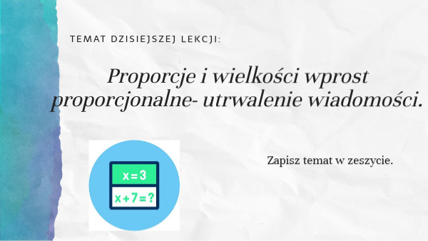 Proporcje i wielkości wprostproporcjonalne- utrwalenie wiadomości.