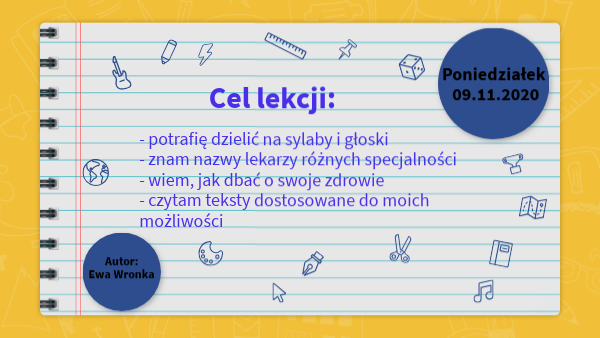 - potrafię dzielić na sylaby i głoski - znam nazwy lekarzy różnych specjalności - wiem, jak dbać o swoje zdrowie - czytam teksty dostosowane do moich możliwości