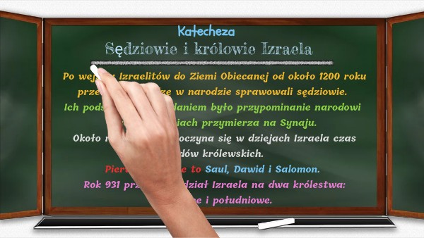 Mimo wyrażonego jasno niezadowolenia, Bóg przychylił się do prośby swego ludu. Wówczas w dziejach Izraela zakończyła się epoka sędziów i rozpoczął się nowy czas- epoka królów. Mówiąc o niej trzeba wspomnieć trzech władców: Saula, Dawida i Salomona. Przyjrzyjmy się im, analizując dane zamieszczone w diagramie w podręczniku lub prezentacji.