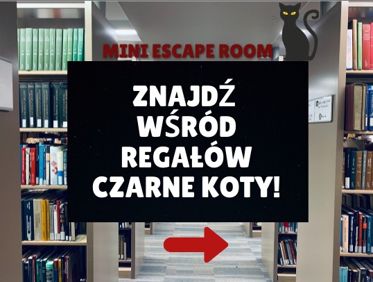 znajdź wśród regałów czarne koty!