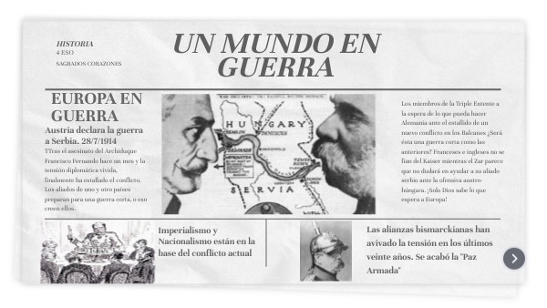 "El asesinato de Francisco Fernando acaba siendo el detonante del conflicto. Las alianzas militares entre los países europeos acaban metiendo a casi toda Europa en la guerra. España se declara neutral"