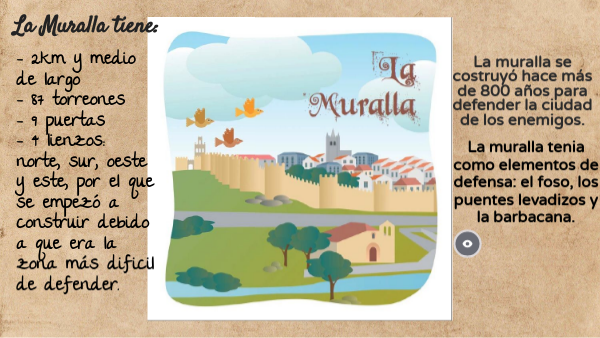 - 2km y medio de largo - 87 torreones - 9 puertas - 4 lienzos: norte, sur, oeste y este, por el que se empezó a construir debido a que era la zona más dificil de defender.