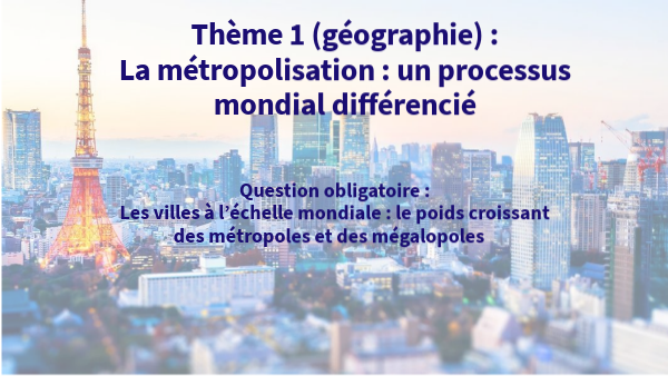 Thème 1 (géographie) : La métropolisation : un processus mondial différencié