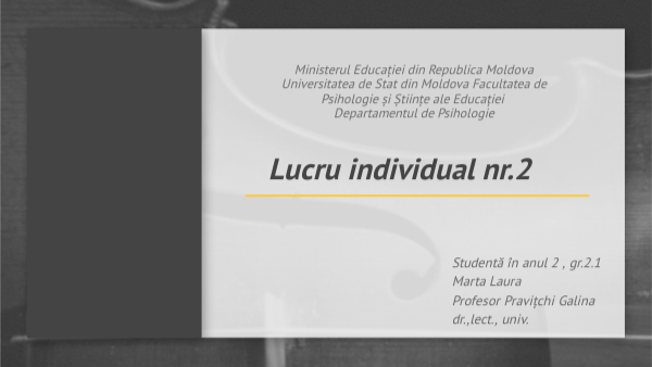 Ministerul Educației din Republica Moldova Universitatea de Stat din Moldova Facultatea de Psihologie și Științe ale Educației Departamentul de Psihologie
