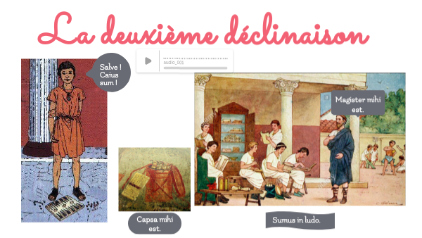 Gratias vobis ago ! Grâce à vous j'ai compris la leçon sur la deuxième déclinaison ! Maintenant, chantons ensemble puis entraînons-nous !