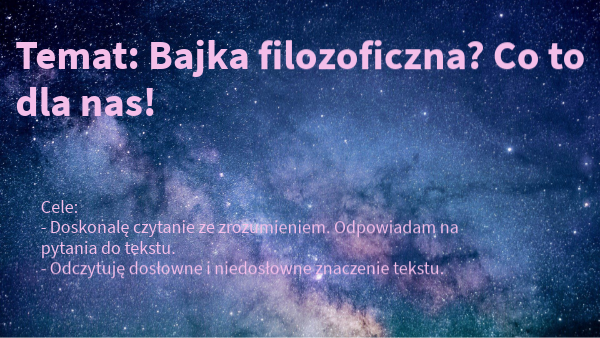 Temat: Bajka filozoficzna? Co to dla nas!
