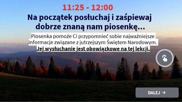 Piosenka pomoże Ci przypomnieć sobie najważniejsze informacje związane z jutrzejszym Świętem Narodowym. Jej wysłuchanie jest obowiązkowe na tej lekcji.