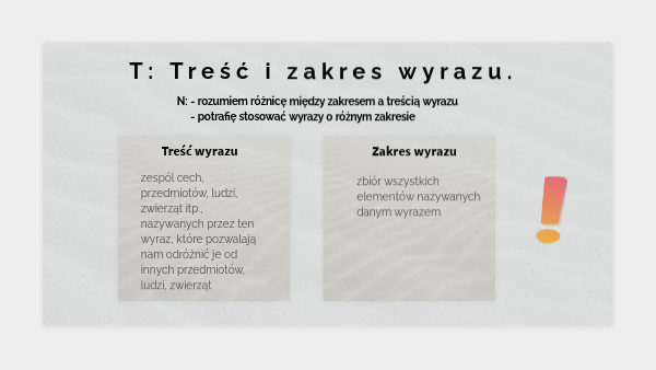 N: - rozumiem różnicę między zakresem a treścią wyrazu - potrafię stosować wyrazy o różnym zakresie