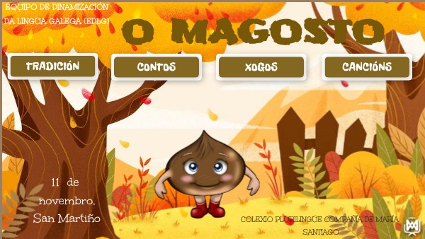 Detrás dunha montaña hai unha casa na que vive a castañeira. Cando chega o outono, a castañeira esperta ben cedo.