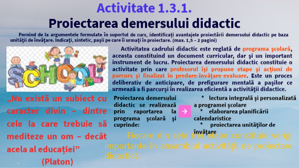 * lectura integrală și personalizată a programei școlare * elaborarea planificării calendaristice * proiectarea unităților de învățare