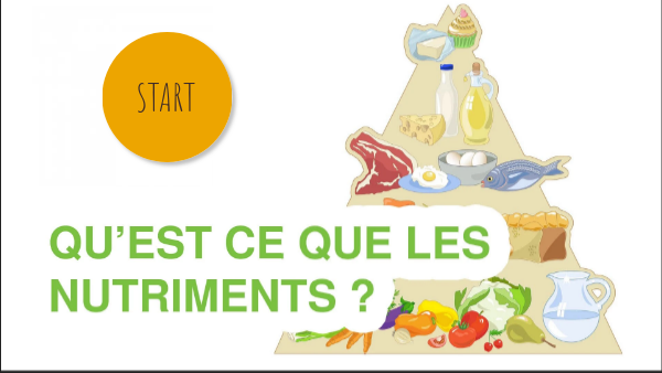 Ce cours intéractif a pour but de vous apprendre toutes les notions nécessaires sur les nutriments essentiels à votre corps !VOTRE MISSION : effectuer toutes les tâches proposer sur la page d'acceuil OBJECTIF : réaliser votre cours à l'aide des activités !