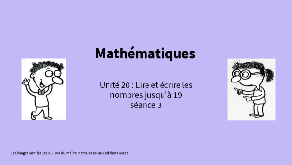 Unité 20 : Lire et écrire les nombres jusqu'à 19 séance 3