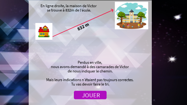 Perdus en ville, nous avons demandé à des camarades de Victor de nous indiquer le chemin. Mais leurs indications n'étaient pas toujours correctes. Tu vas devoir faire le tri.