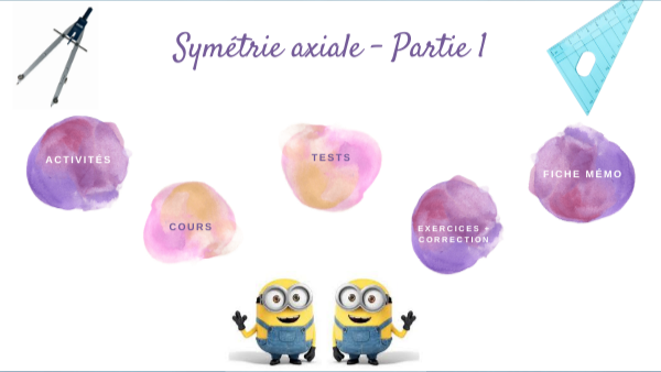 Etape n°1 : Image d'un point - sélectionner symétrie axiale (en vert) ; - 10 questions - image d'un point Si résultat < 5/10 refaire 5 questions jusqu'à obtenir au moins 3/5. Etape n°2 : Image d'une figure - sélectionner symétrie axiale (en vert) ; - 10 questions - image d'une figure (facile / difficile)