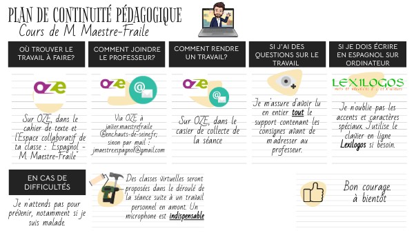 Via OZE à javier.maestrefraile@enc.hauts-de-seine.fr; sinon par mail : jmaestre.espagnol@gmail.com