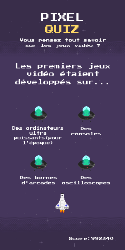 Bonne réponse ! Les premiers jeux vidéo étaient développés dans les années 1960 sur des oscilloscopes
