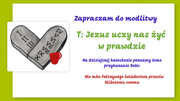 Na dzisiejszej katechezie poznamy ósme przykazanie Boże: Nie mów fałszywego świadectwa przeciw bliźniemu swemu