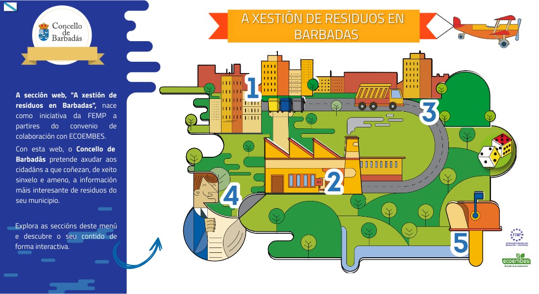 A sección web, "A xestión de residuos en Barbadas", nace como iniciativa da FEMP a partires do convenio de colaboración con ECOEMBES. Con esta web, o Concello de Barbadás pretende axudar aos cidadáns a que coñezan, de xeito sinxelo e ameno, a información máis interesante de residuos do seu municipio.