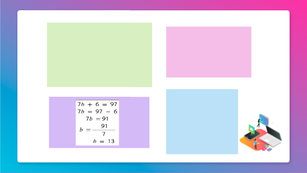 Para esta ecuación vamos a sumar los siguientes valores: 7b + 6 = 97