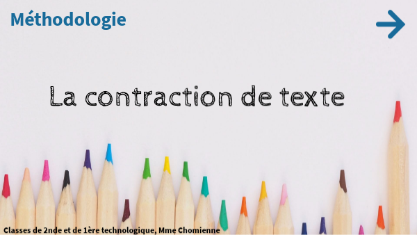 Appliquons pas à pas la méthode de la contraction et pour cela commençons par l'observation du texte. Vous avez besoin de : - votre texte - une feuille de brouillon - des feutres, surligneurs, crayons...