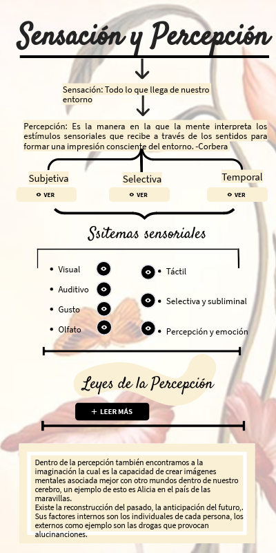 Percepción: Es la manera en la que la mente interpreta los estímulos sensoriales que recibe a través de los sentidos para formar una impresión consciente del entorno. -Corbera