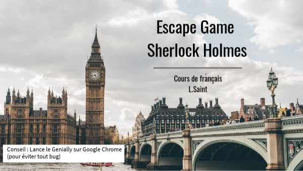 Sherlock Holmes cherche une nouvelle brigade volante pour l’aider dans la résolution de ses enquêtes. Pour tester votre niveau, il vous met au défi de résoudre les énigmes qu'il a confiées à ses comparses. The game is on !