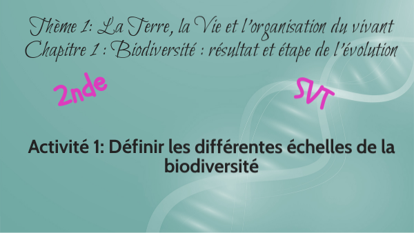 2nde, thème 1, échelle de la biodiversité