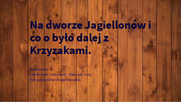 Na dworze Jagiellonów i co o było dalej z Krzyżakami.