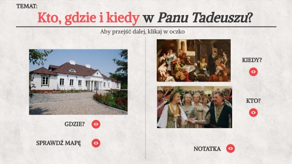 Na podstawie informacji zawartych w prezentacji wykonaj w zeszycie notatkę na teamt czasu i miejsca zdarzeń oraz bohaterów "Pana Tadusza".