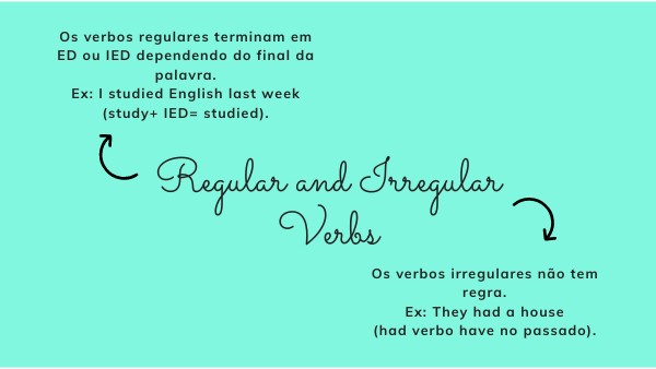 Os verbos regulares terminam em ED ou IED dependendo do final da palavra. Ex: I studied English last week (study+ IED= studied).