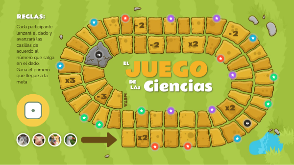 Cada participante lanzará el dado y avanzará las casillas de acuerdo al número que salga en el dado..Gana el primero que llegué a la meta