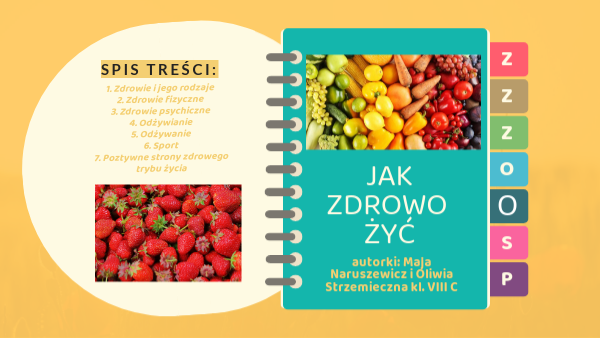 1. Zdrowie i jego rodzaje 2. Zdrowie fizyczne 3. Zdrowie psychiczne 4. Odżywianie 5. Odżywanie 6. Sport 7. Poztywne strony zdrowego trybu życia