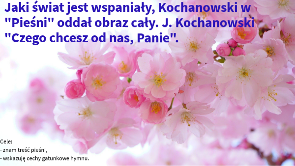 Jaki świat jest wspaniały, Kochanowski w "Pieśni" oddał obraz cały. J. Kochanowski "Czego chcesz od nas, Panie".