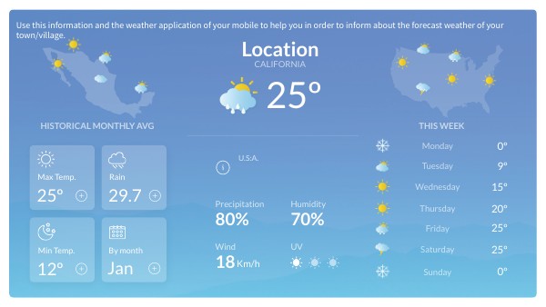 Use this information and the weather application of your mobile to help you in order to inform about the forecast weather of your town/village.