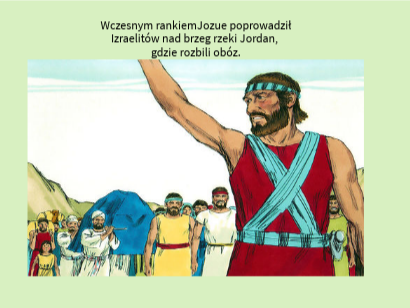 Wczesnym rankiemJozue poprowadził Izraelitów nad brzeg rzeki Jordan, gdzie rozbili obóz.
