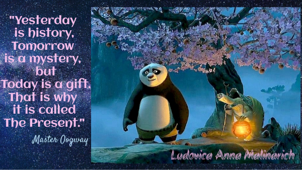 As I've just said, this quote comes from the cartoon KUNG FU PANDA where Master Oogway is the fountain of wisdom, the Master who unraveled the mysteries of harmony and focus...he is the father of KUNG FU. He delivers deep knowledge and wisdom and everybody listens to him to learn the real meaning of life. He tries to explain to Po the oneness of existence. He wants to help Po to understand that Yesterday is over, whatever happened, happened and whatever didn’t happen, didn’t happen. Spending time and energy today, regretting things that are now history is a waste of energy. Tomorrow is a mystery. We don’t know what tomorrow will bring, even if we make plans, the future is out of our direct control. But today is a gift. We have it here and now. We have control over our thoughts and our feelings. We have the power to give a meaning to our present. The first part of the movie is about the characters, including Po, the Kung Fu Panda, the overweight panda that doesn't believe that he can become the Dragon Warrior. It is his destiny but only Master Oogway can see that. He wants us to understand that we are who we are. We must discover who we are and love ourselves for who we are, respect ourselves for who we are. We should always follow our real nature because if we don't, we might have a successful and rich life, but at the end we will feel empty and our happyness will be an illusion, if those reached goals were contrary to our nature. Soon or late, we will have to take a deep look at ourselves and see if we have taken the right direction in our life and where this direction is heading to. It is better to take a moment now and listen to our heart to try to understand if we are on the right path, the path of our destiny, of our real nature. If not, we will save a lot of time and maybe also a lot of struggling, involved in something that is not for us.