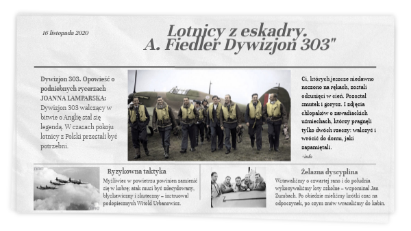 Dywizjon 303. Opowieść o podniebnych rycerzach JOANNA LAMPARSKA: Dywizjon 303 walczący w bitwie o Anglię stał się legendą. W czasach pokoju lotnicy z Polski przestali być potrzebni.