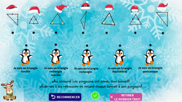 Au secours! Les pingouins ont perdu leur bonnet!! Aide-les à les retrouver en reliant chaque bonnet à son pingouin!!