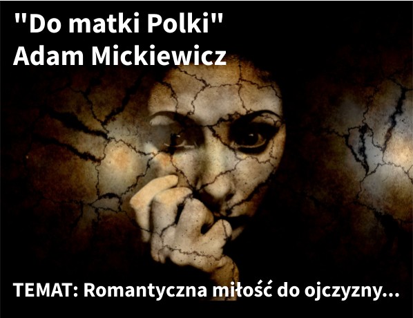 Poeta odwołuje się w wierszu do martyrologii, ukazuje niesprawiedliwość dziejową i los, od którego nie ma ucieczki. NOTATKA: 1. Wiersz powstał krótko przed wybuchem powstania listopadowego. 2. W postaci bohaterki lirycznej kryje się los tysięcy polskich kobiet-matek. 3. W utworze podmiot liryczny zwraca się bezpośrednio do matki, ukazując pesymistyczną wizję walki o wolność.