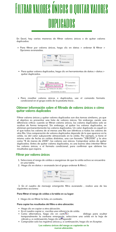 Obtener información sobre el filtrado de valores únicos o cómo quitar valores duplicados