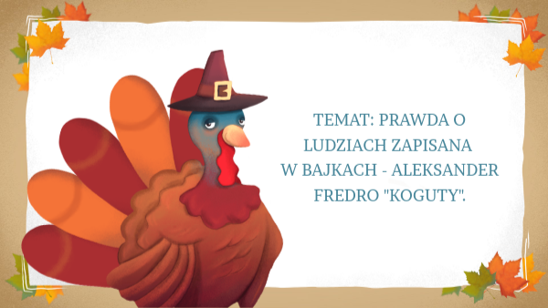 temat: Prawda o ludziach zapisana w bajkach - aleksander Fredro "Koguty".