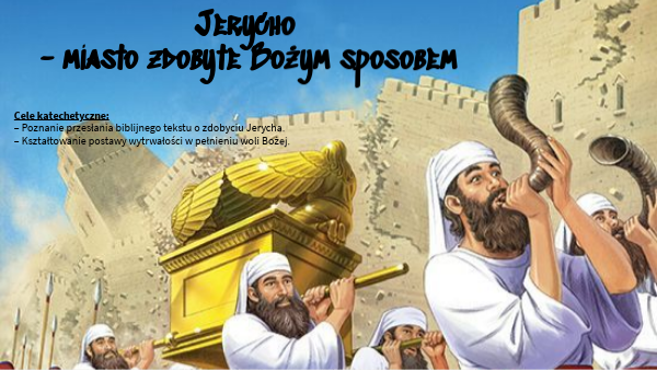 Cele katechetyczne: – Poznanie przesłania biblijnego tekstu o zdobyciu Jerycha. – Kształtowanie postawy wytrwałości w pełnieniu woli Bożej.