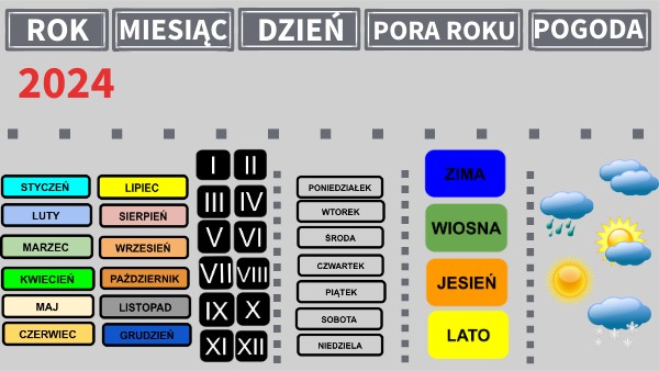 Kalendarz - miesiące, znaki rzymskie.