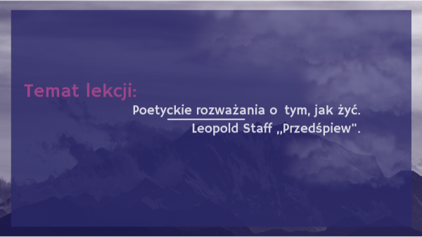 Poetyckie rozważania o tym, jak żyć. Leopold Staff ,,Przedśpiew".