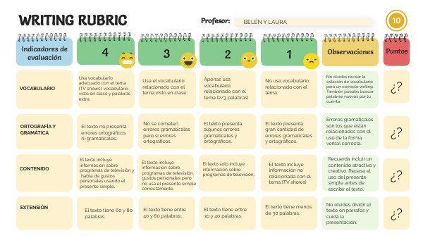 Rúbrica de expresión escrita. Trabajo por estaciones.