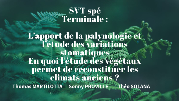 SVT spéTerminale : L’apport de la palynologie et l’étude des variations stomatiques En quoi l’étude des végétaux permet de reconstituer les climats anciens ?